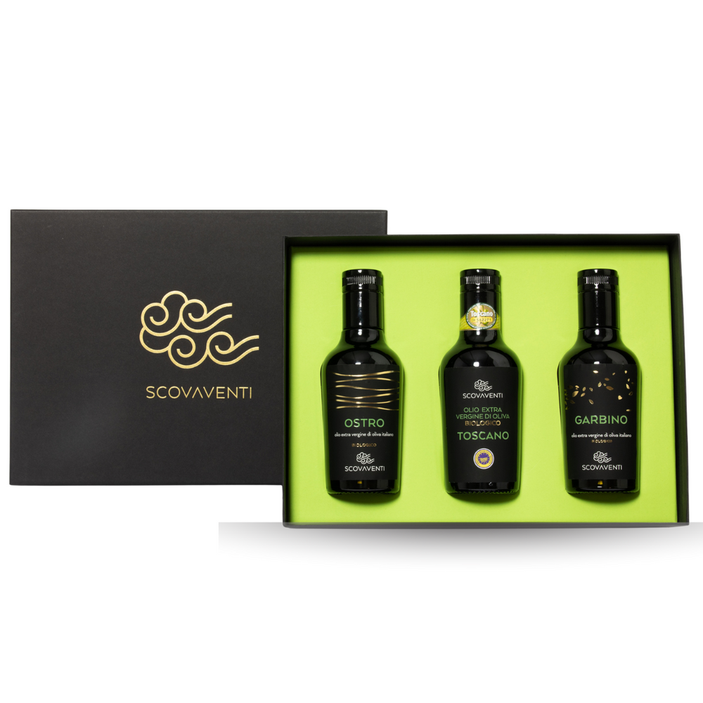 Sorprendi il tuo palato e quello dei tuoi cari con la Confezione Degustazione - Olio Extravergine di Oliva Biologico, un viaggio culinario attraverso le eccellenze dell'olio toscano.