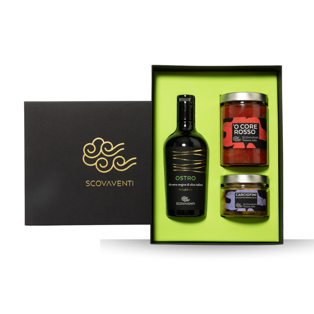 Selezione a scelta di 1 olio Extravergine di Oliva Biologico tra GARBINO, OSTRO, TOSCANO IGP, MAURINO, LECCIO DEL CORNO da 500ml + 1 vaso a scelta di conserva da 500g + 1 vaso a scelta di sott’oli o salse da 314ml.