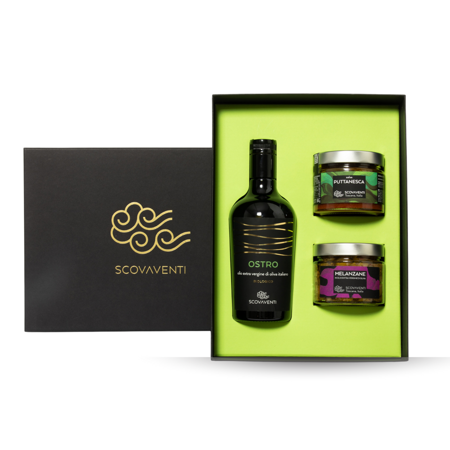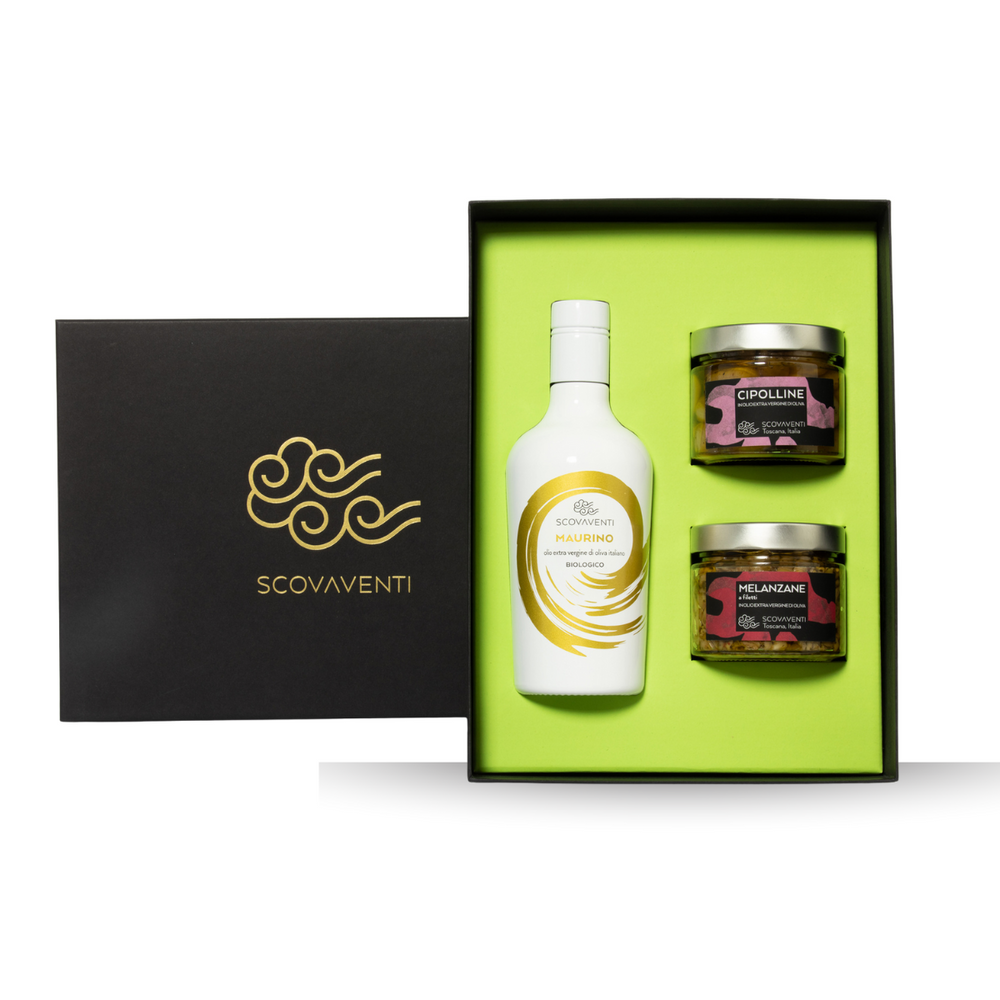 Selezione a scelta di 1 olio Extravergine di Oliva Biologico tra GARBINO, OSTRO, TOSCANO IGP, MAURINO, LECCIO DEL CORNO da 500ml. + 2 vasi a scelta di sott’oli o salse da 314ml.
